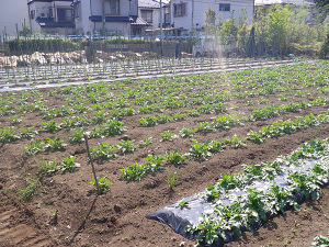 「畑の有効活用」「ヒートアイランド現象の緩和」「地産地消の効果(フードマイレージの削減)」を目的として、無農薬野菜の栽培を行っています。