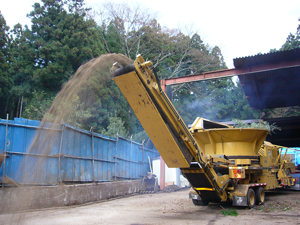資源活用委員会の活動 現場では必ず剪定枝、梱包材、鉄屑などさまざまな処分材(ゴミ)が発生します。当社では処分材を11種類に分別し、再利用、リサイクル、処分を行っています。 剪定枝は提携工場でチップ化して農園に撒くなど、資源保護と環境保全に努めています。