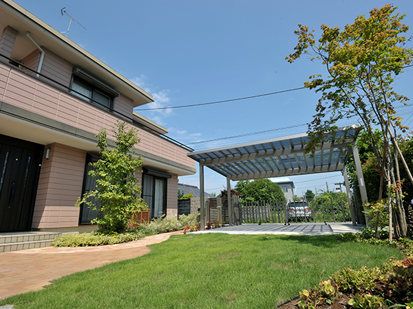 使いやすく優しいアプローチ、停めやすい駐車場。住む人の気持ちになって一番良いラインをプロデュースします。エクステリアもお庭も、設計から施工までを一貫して行います。